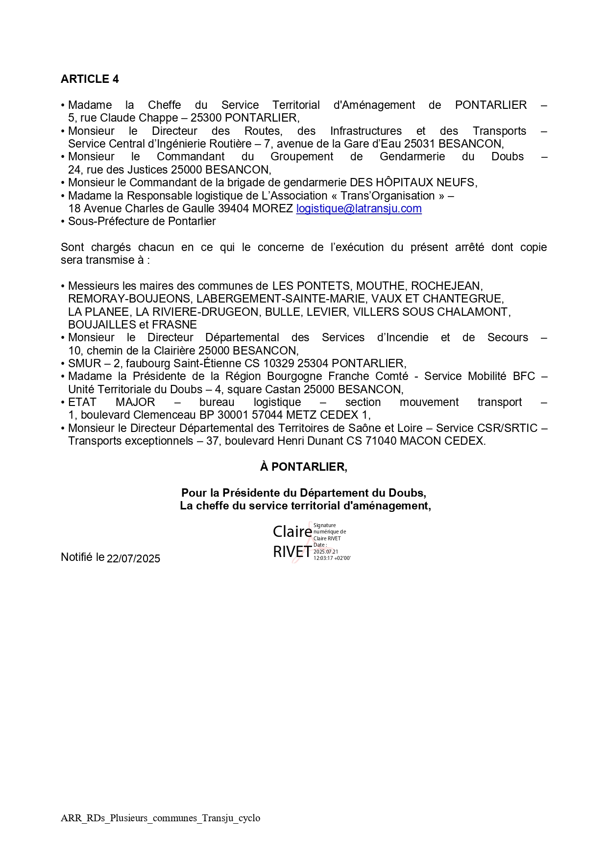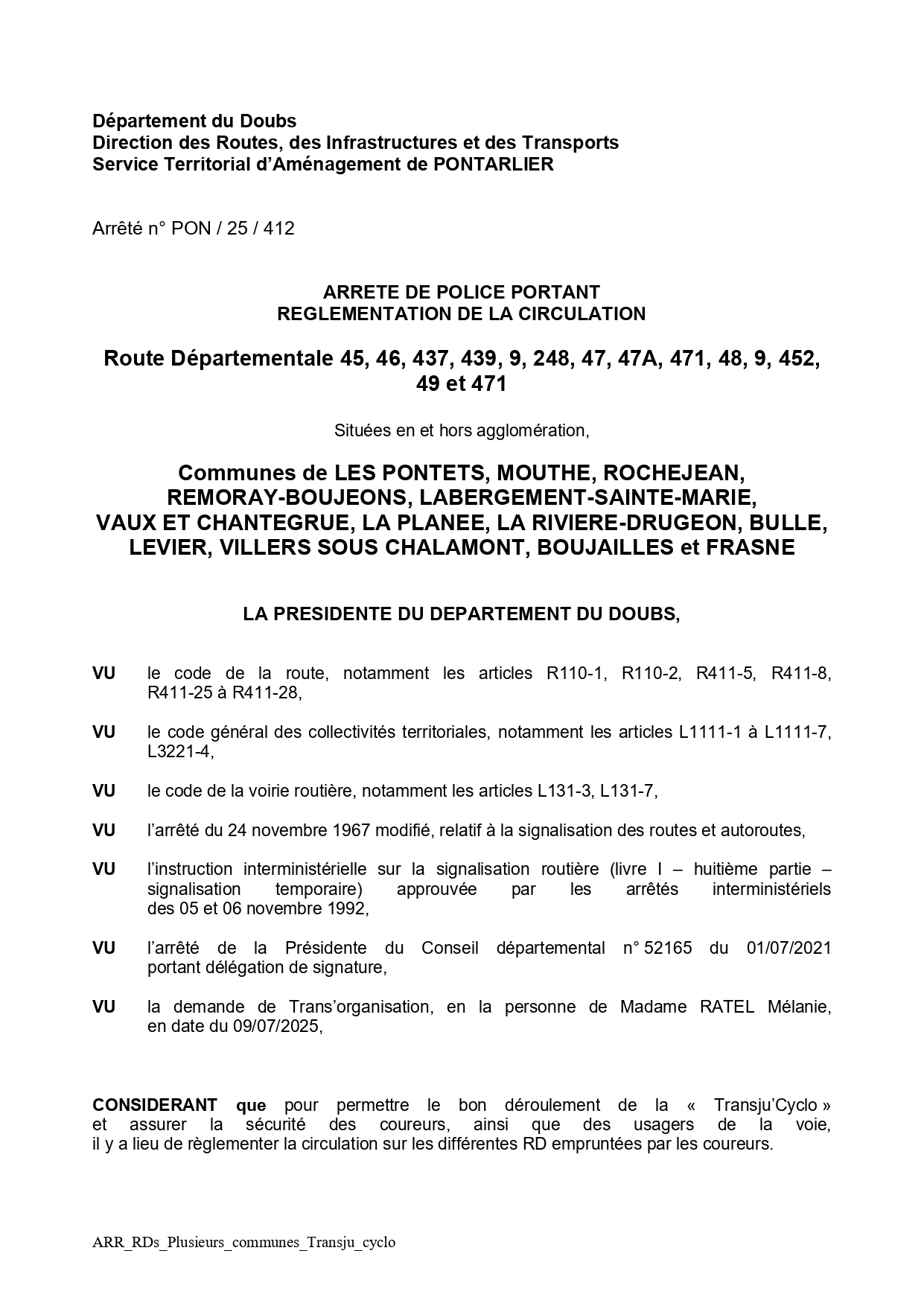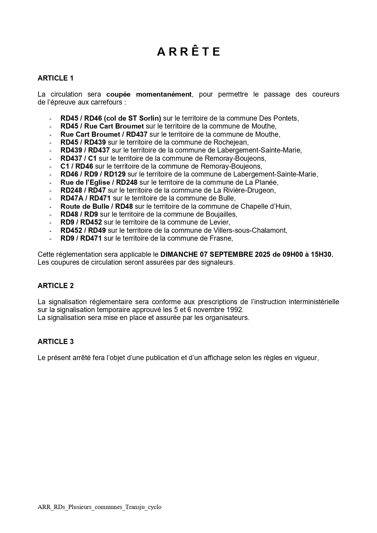 ARRÊTE CIRCULATION - TRANSJU CYCLO - LE 07 SEPTEMBRE 2025