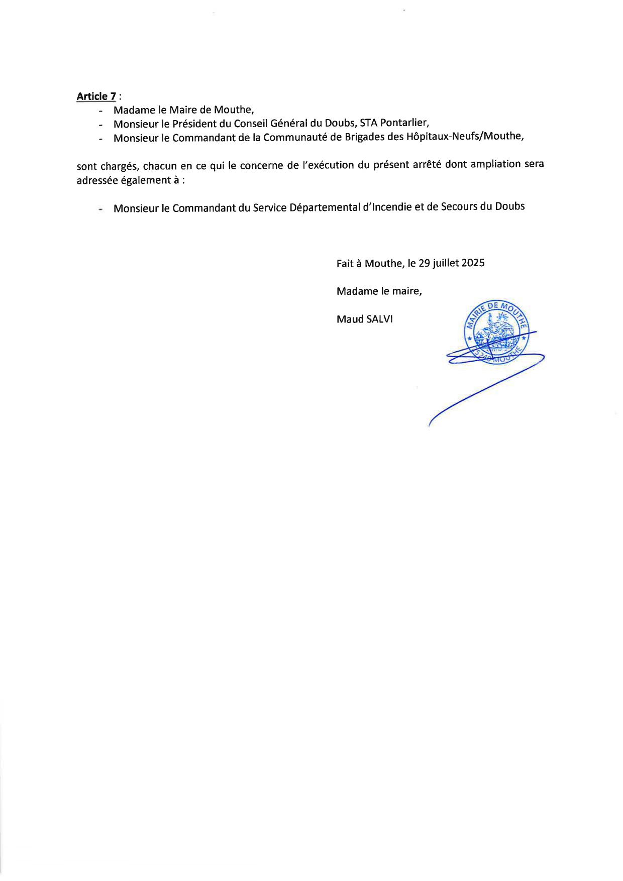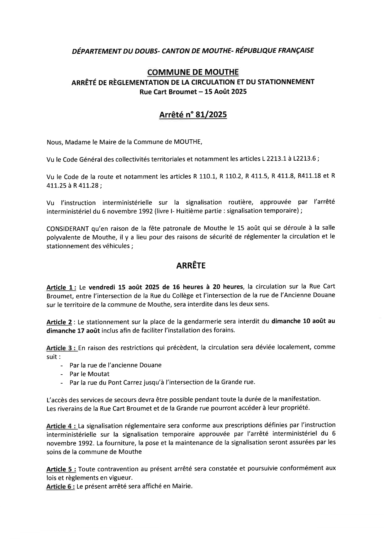 ARRETE - REGLEMENTATION DE LA CIRCULATION