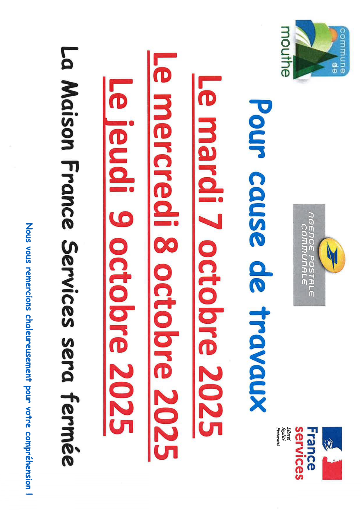 MFS ET LA POSTE - FERMEE POUR CAUSE DE TRAVAUX