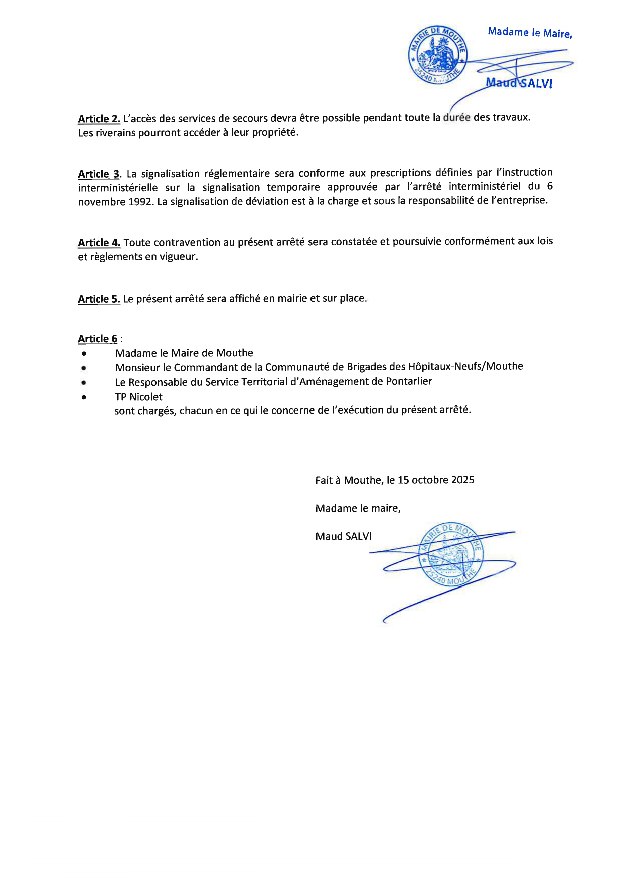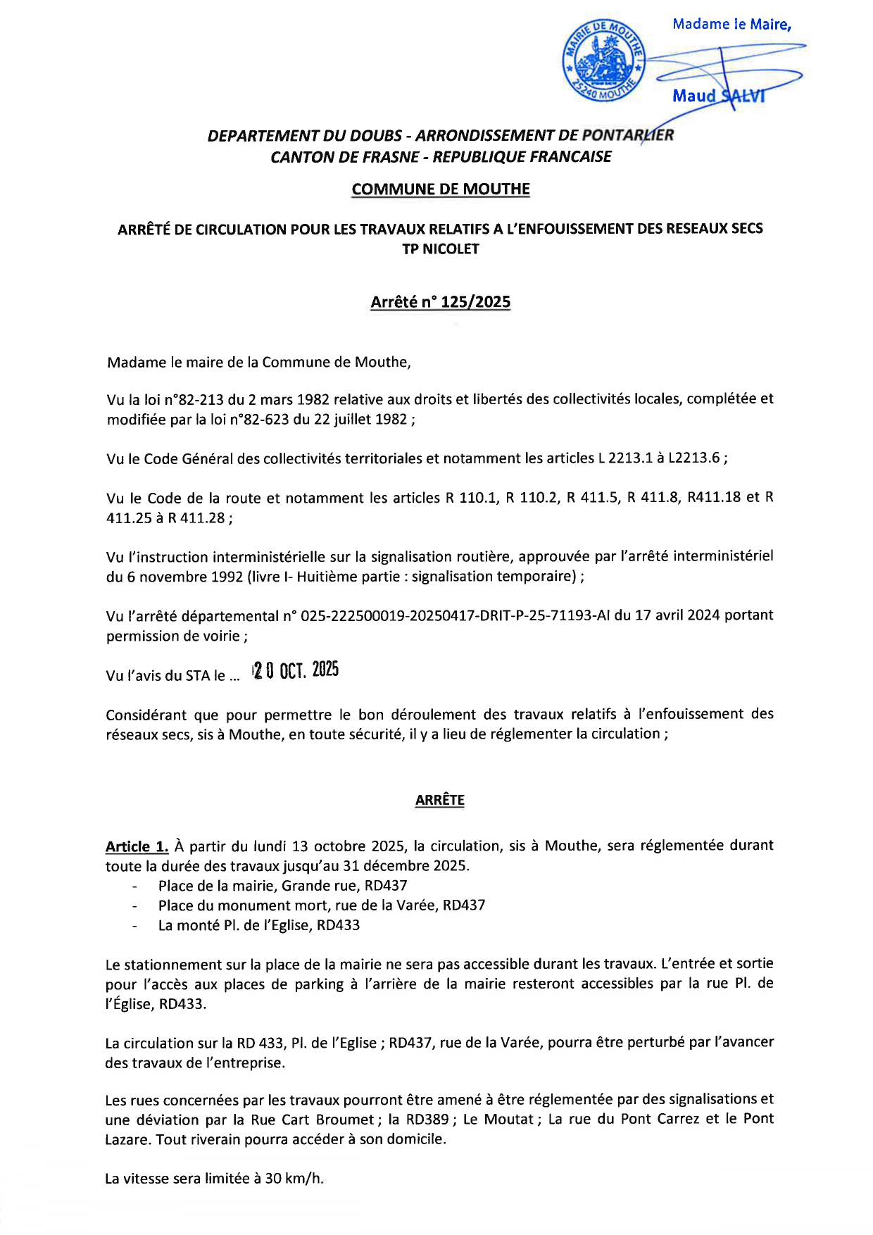 ARRETE 123 - REGLEMENTATION DE LA CIRCULATION TP NICOLET