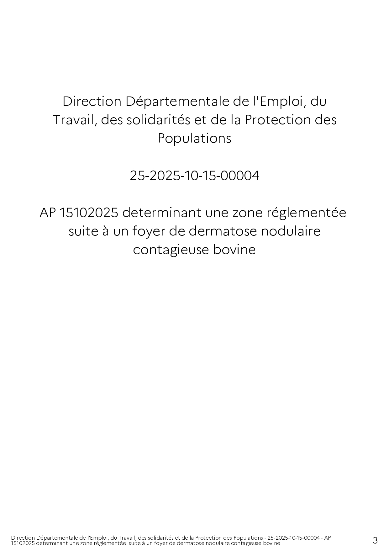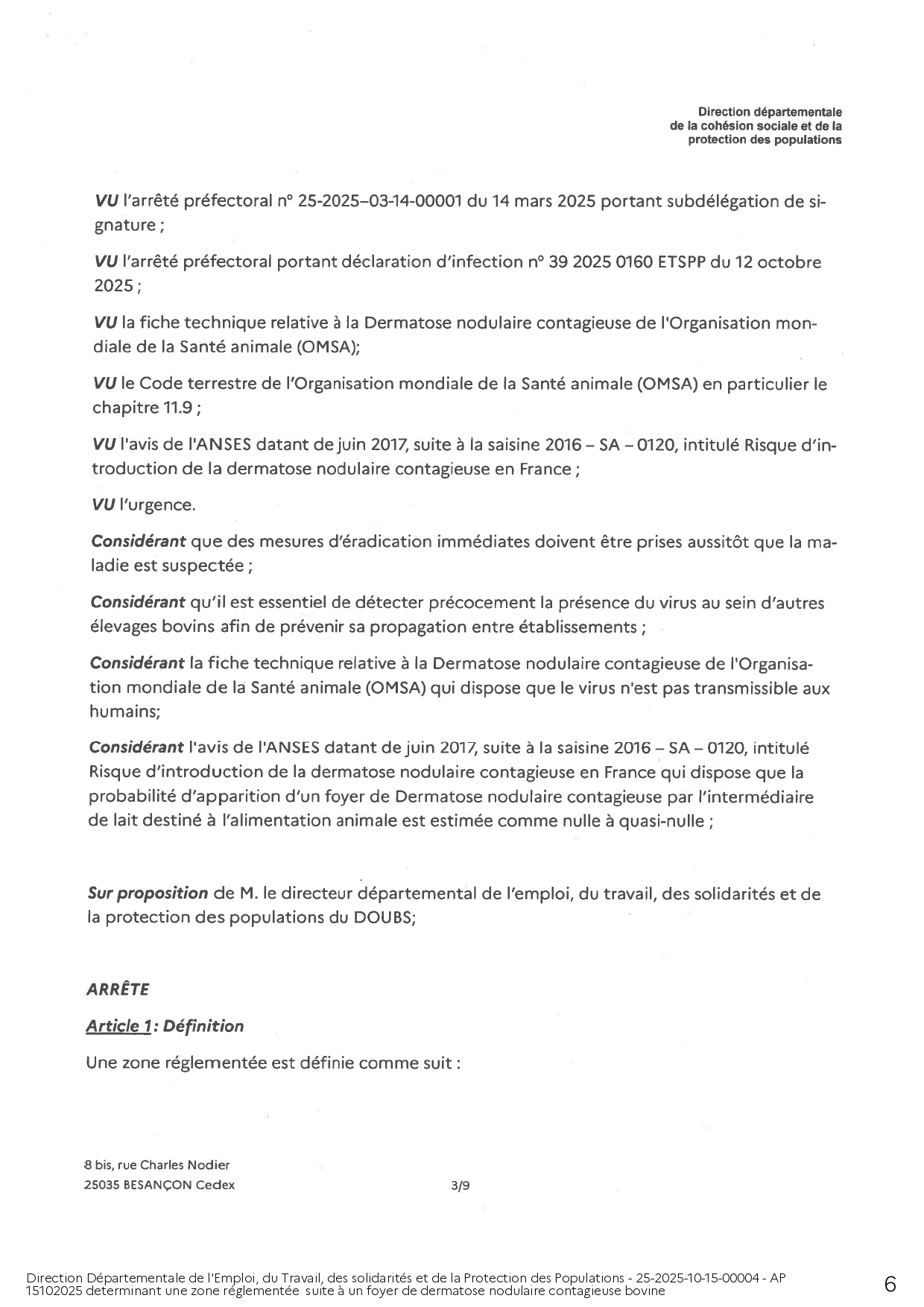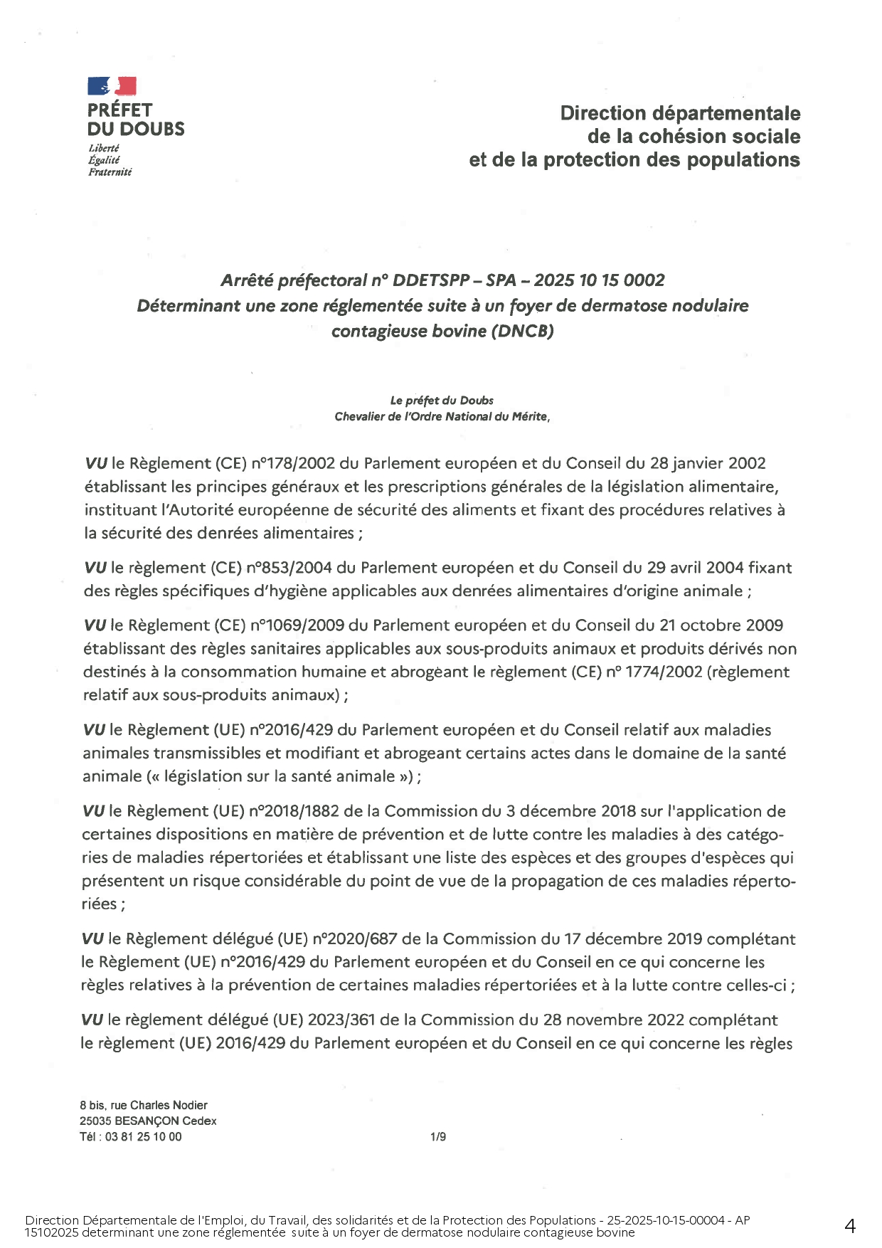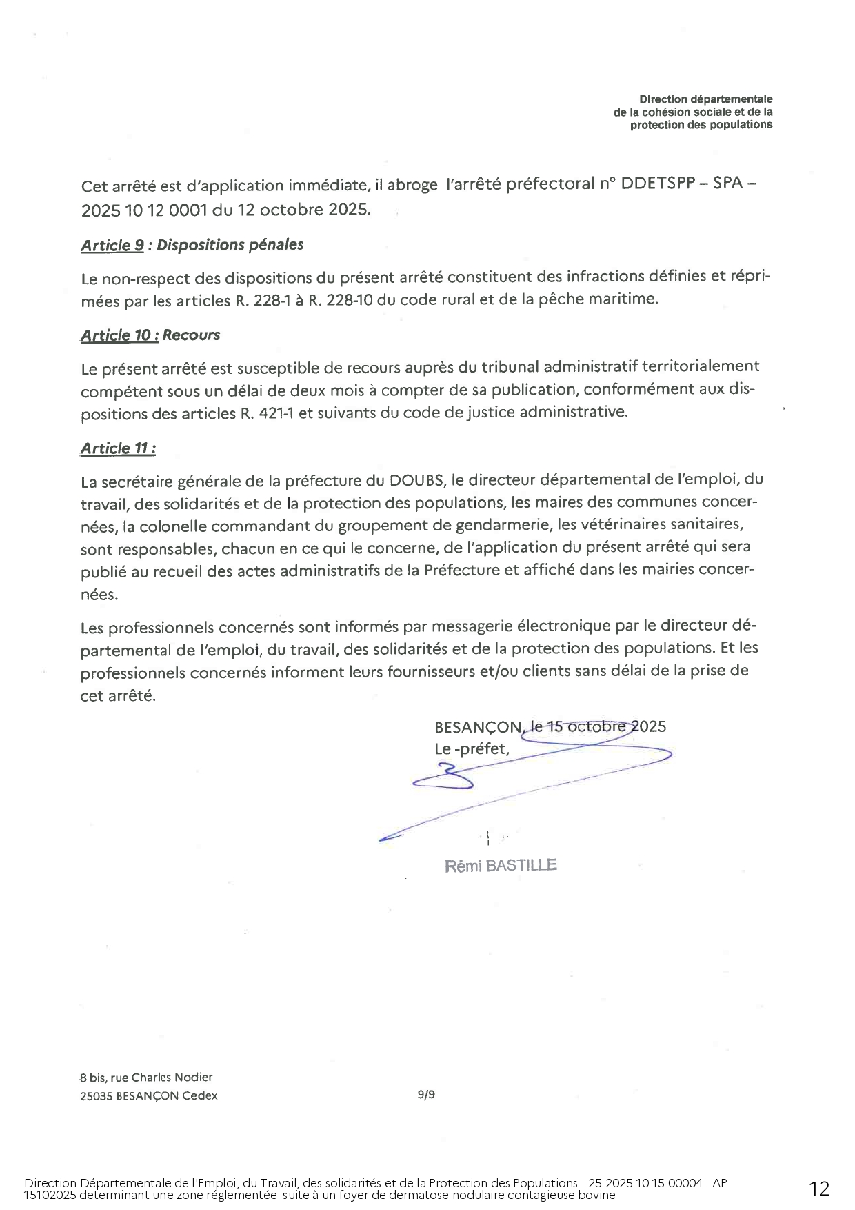 Arrêté préfectoral n° DDETSPP - SPA - 2025 10 15 0002