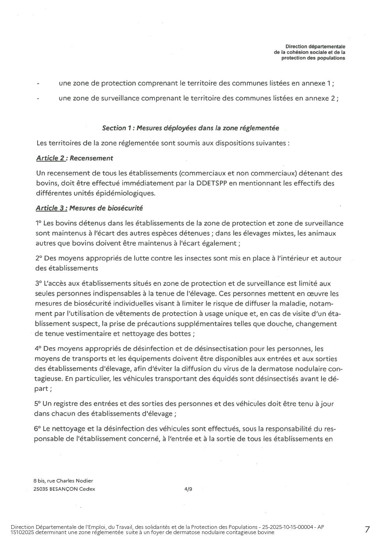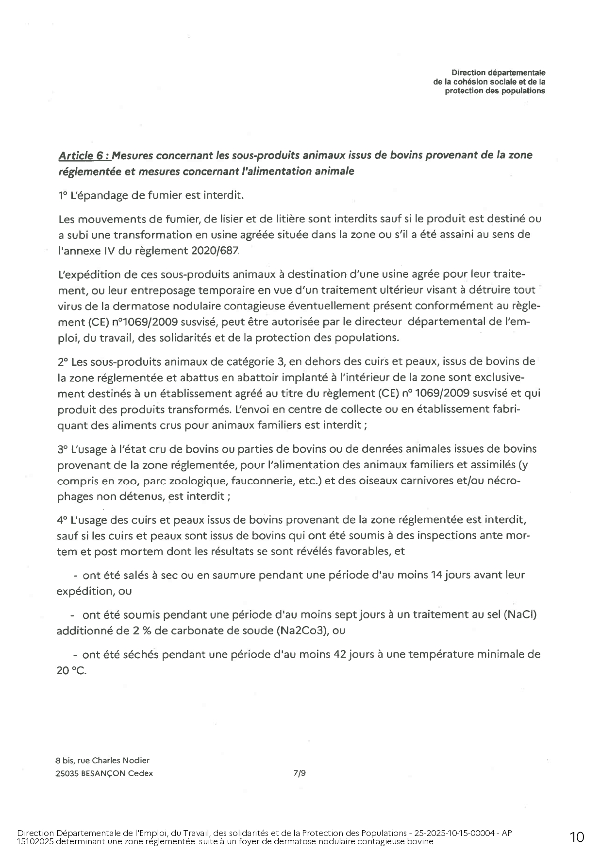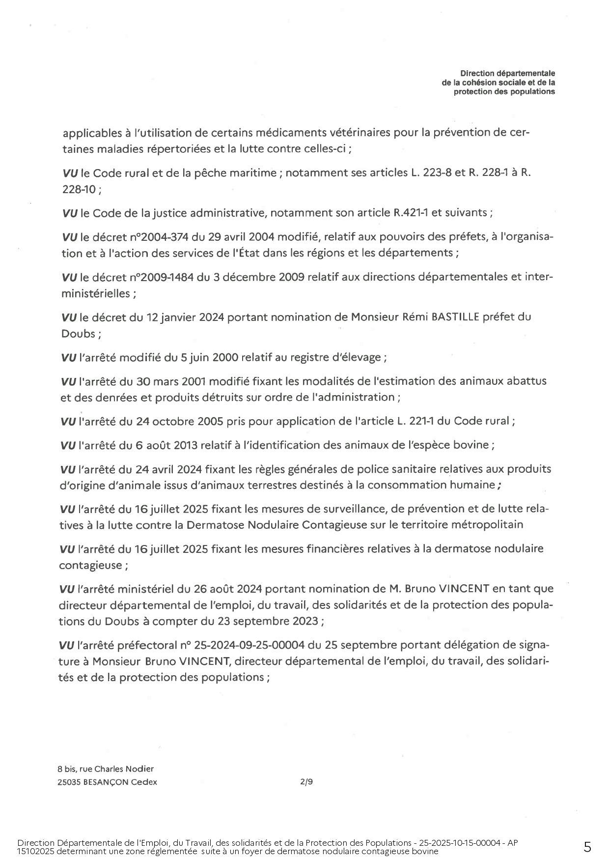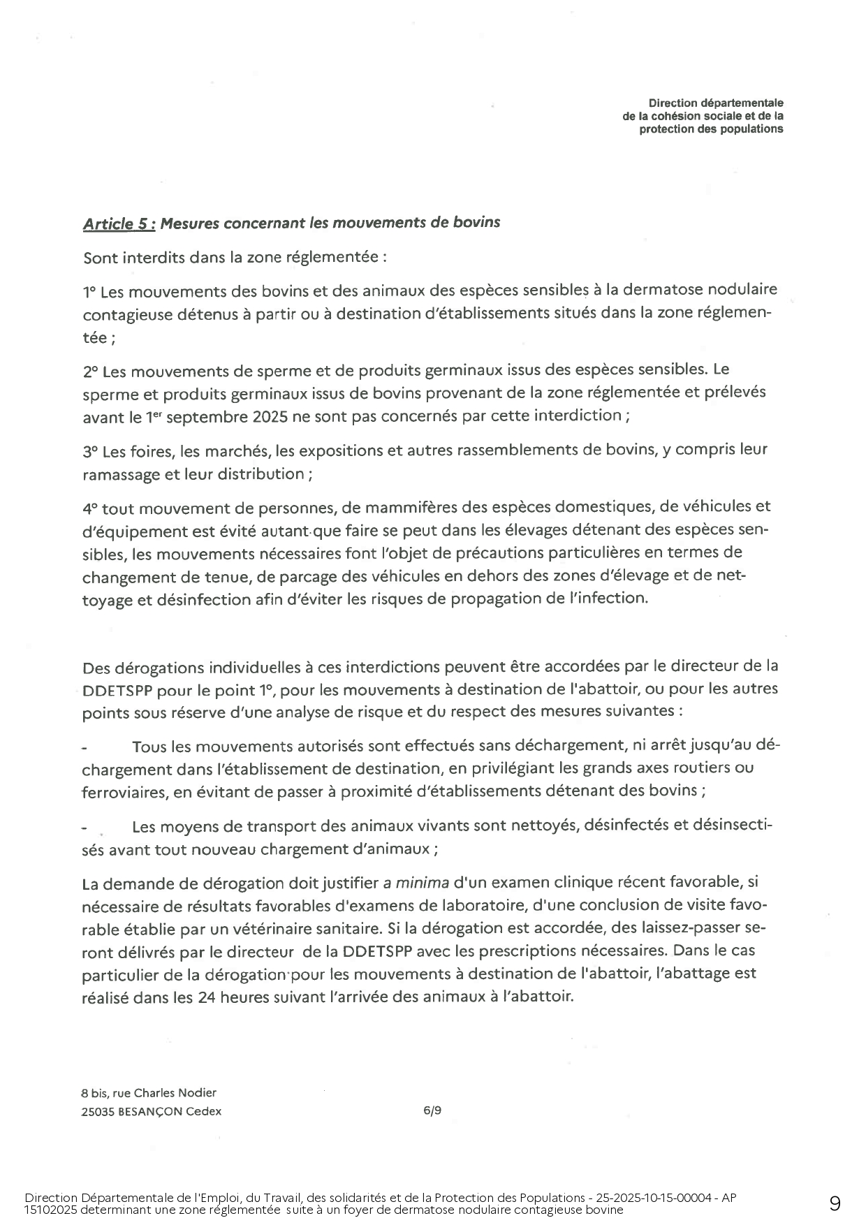 Arrêté préfectoral n° DDETSPP - SPA - 2025 10 15 0002