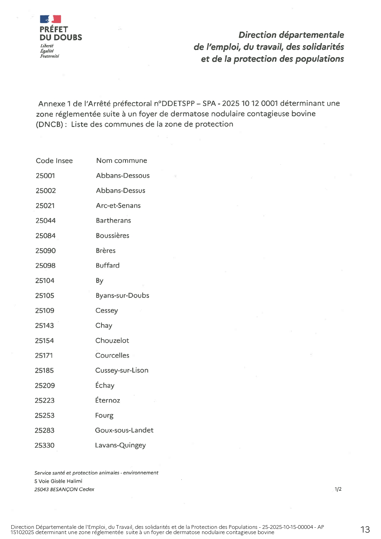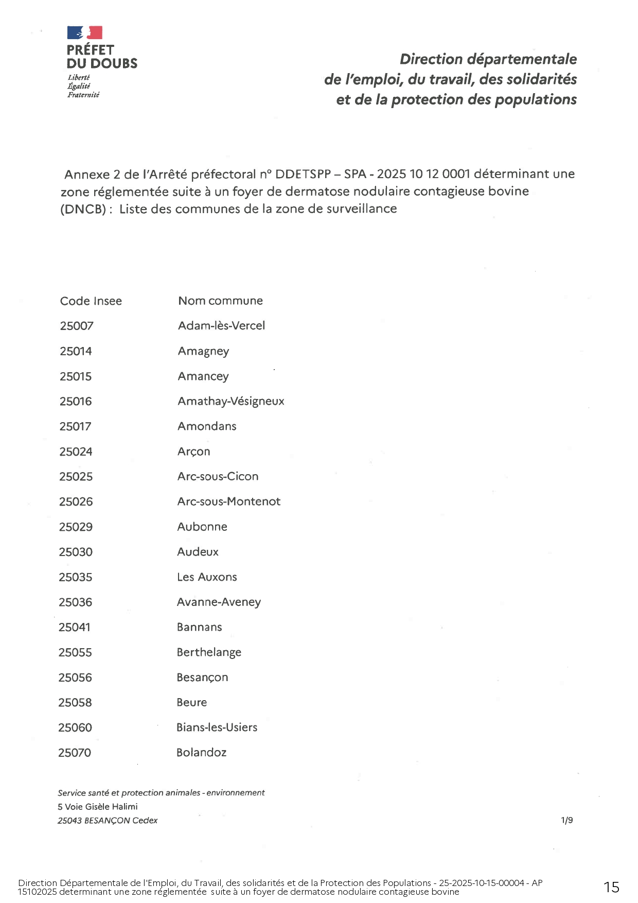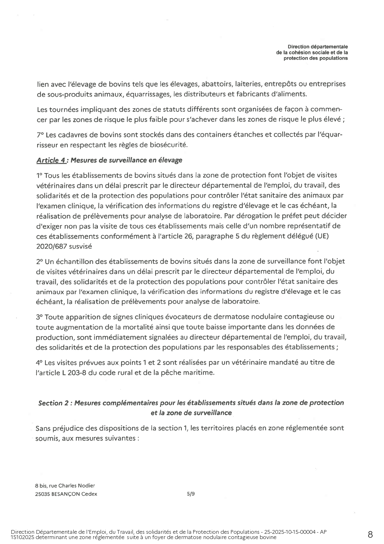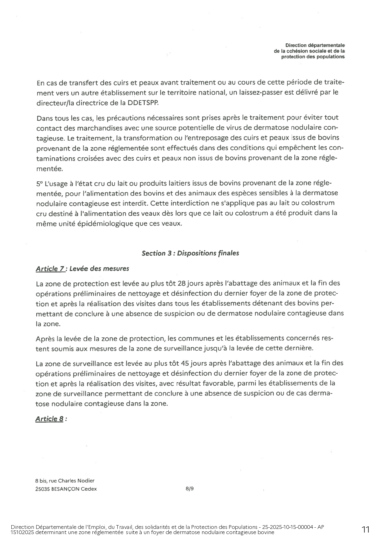 Arrêté préfectoral n° DDETSPP - SPA - 2025 10 15 0002