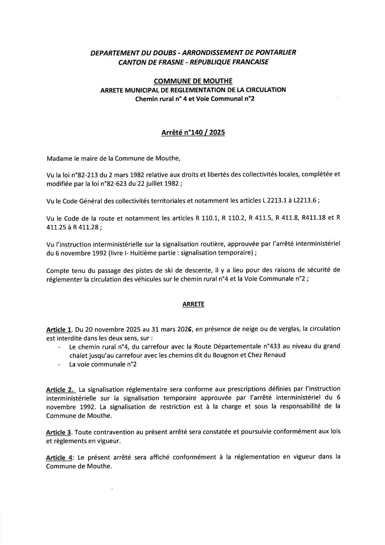 ARRETE 140 - REGLEMENTATION DE LA CIRCULATION